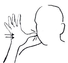 The index and thumb of the right "G" hand are pushed up through the left hand, which forms a cup. |